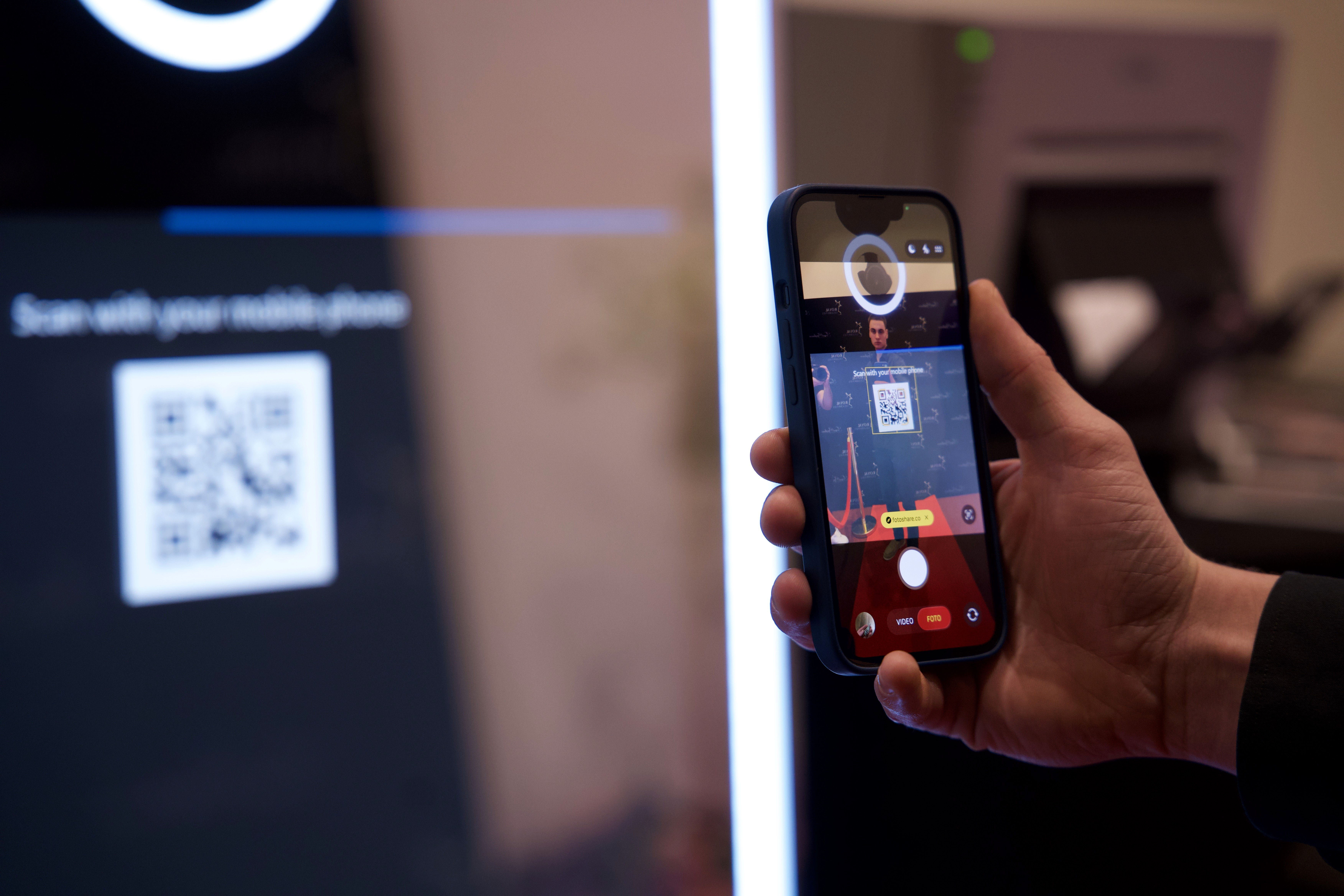 Wist je dat wij het startscherm en het fotokader volledig kosteloos naar wens ontwerpen? Wij zorgen ervoor dat het ontwerp perfect bij de stijl van jullie evenement past. Wil je een persoonlijke tekst, specifieke kleuren, achtergrond of je (bedrijfs)logo erop? Geen probleem, we regelen het allemaal! Zelfs de kleur van de ledverlichting kunnen we aanpassen om de sfeer helemaal af te maken. Zo wordt jouw photobooth net zo uniek als jullie evenement zelf!